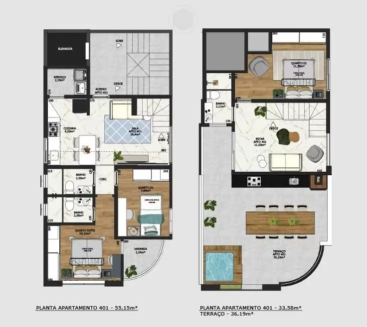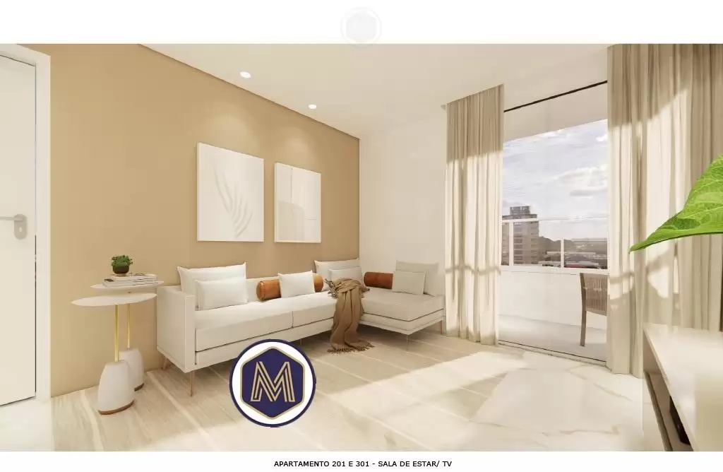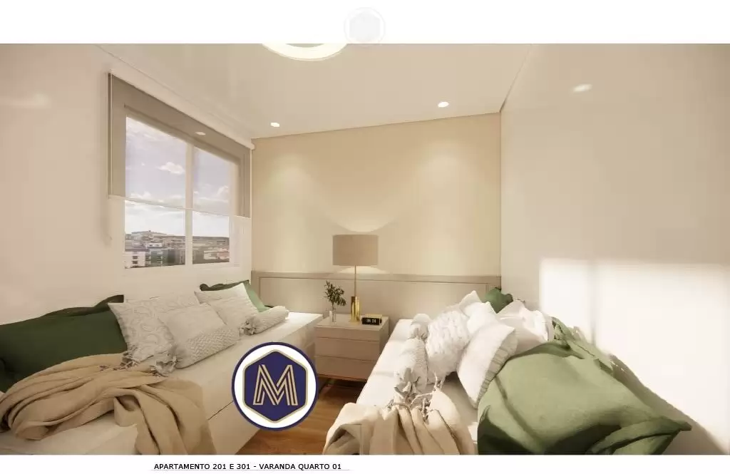2 quartos com suíte, piso em porcelanato e varanda