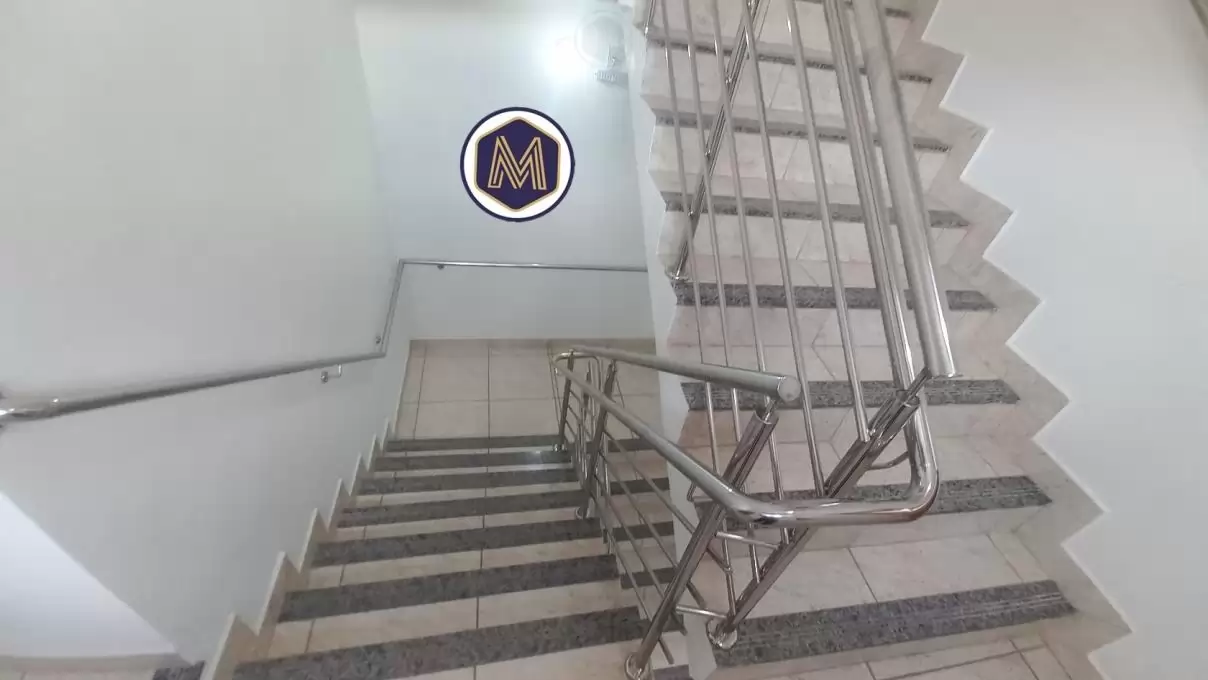 Sala ampla para 2 ambientes em porcelanato, acesso direto para a cobertura