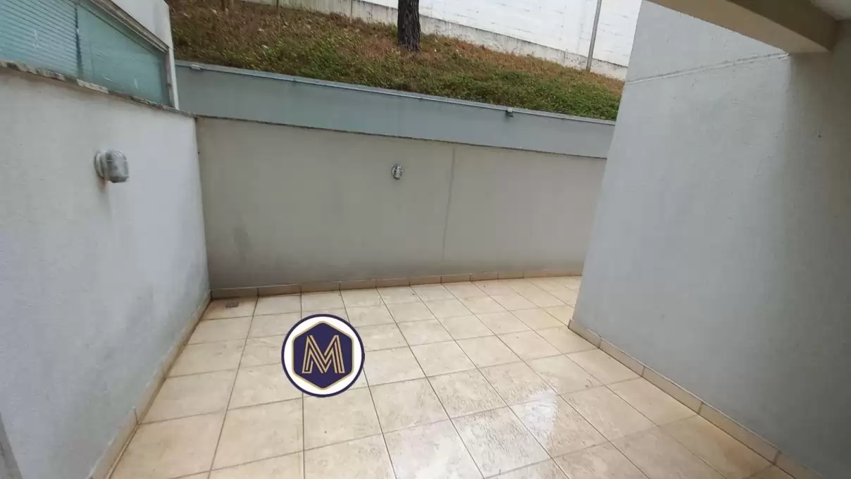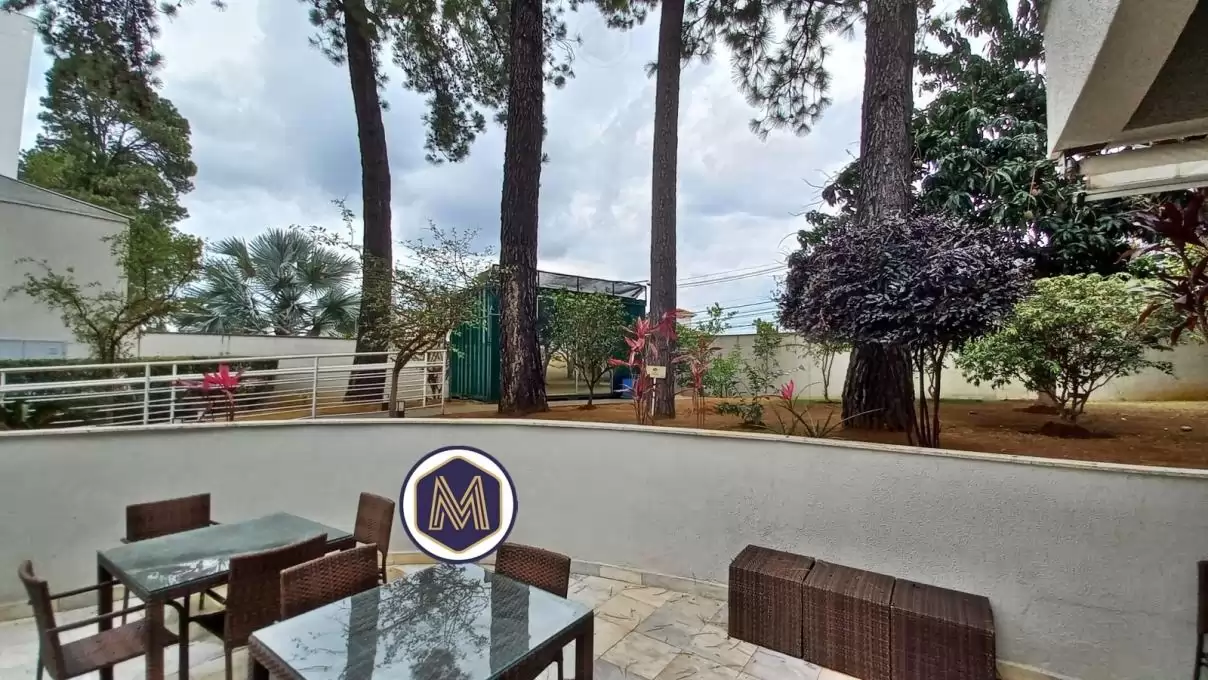 Área externa em L ampla, ideal para espaço gourmet ou para ampliar a sala