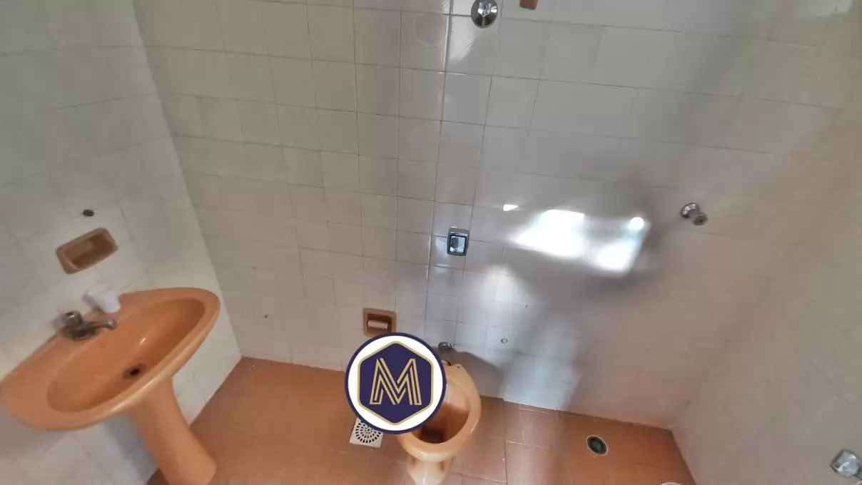 Banheiros da suíte e social com piso em cerâmica e box em blindex